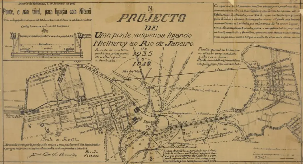 - 1875: Dom Pedro II contrata um engenheiro inglês para propor uma solução para ligar a cidade do Rio de Janeiro a Niterói;
